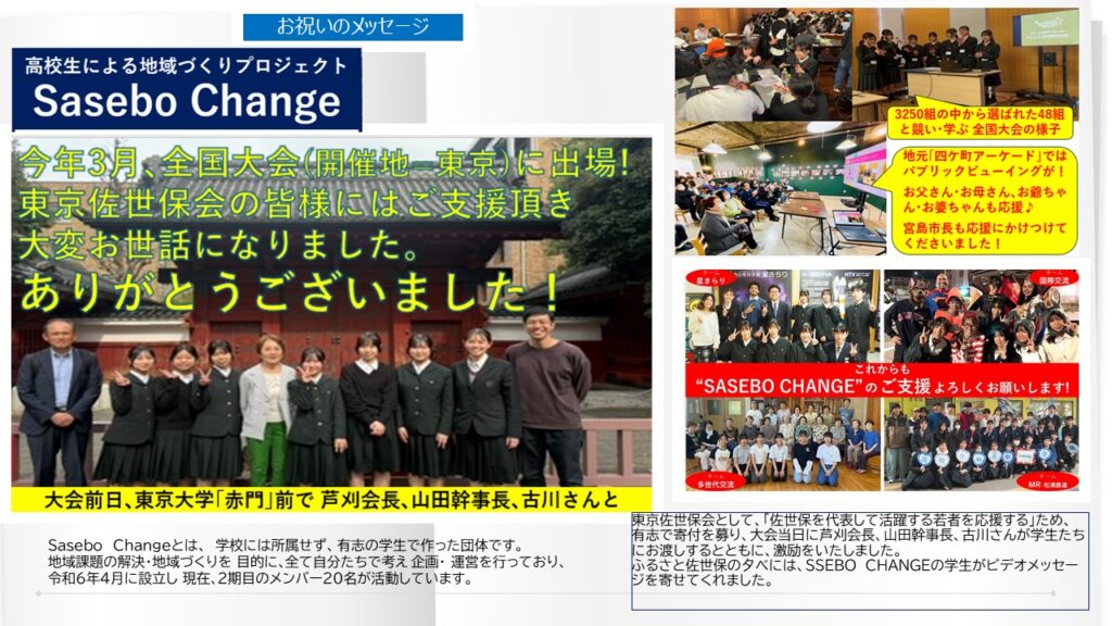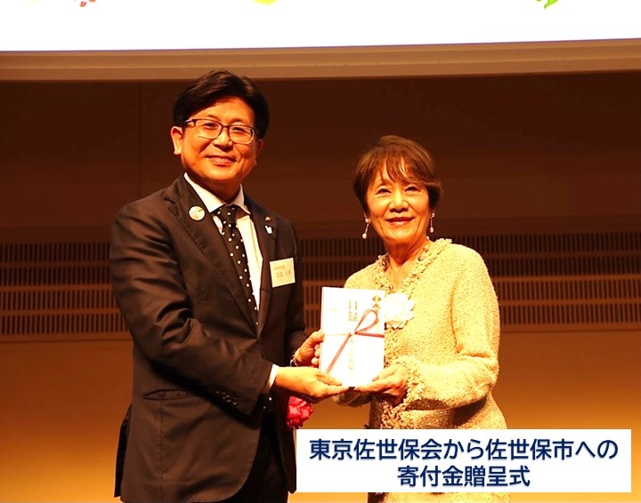 今年は有志の方からの協賛金、参加者の方々からいただいた寄附金を東京佐世保会芦刈会長から、佐世保市宮島市長へお渡しいたしました。